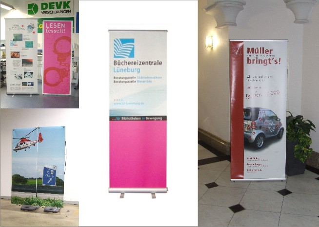 DISPLAYS L-Banner oder Roll-Up, egal für welches System Sie sich entscheiden, mit Beiden erhalten Sie ein zeitloses, robustes und preiswertes Alumunium-Displaysystem. Idealer Werbeträger auf Veranstaltungen und Messen, die sich durch schnelles, werkzeugloses Auf- und Abbauen auszeichnen. Displays sind in verschiedenen Größen, optional auch mit Beleuchtung, erhältlich. |